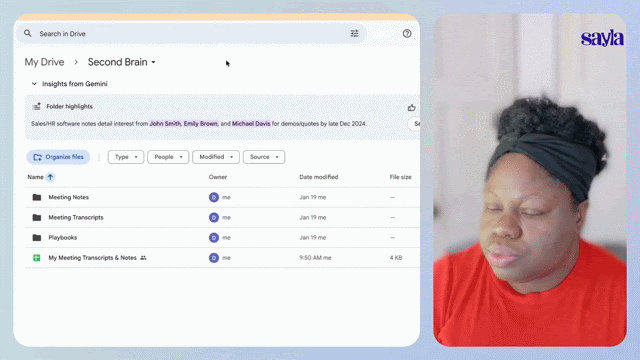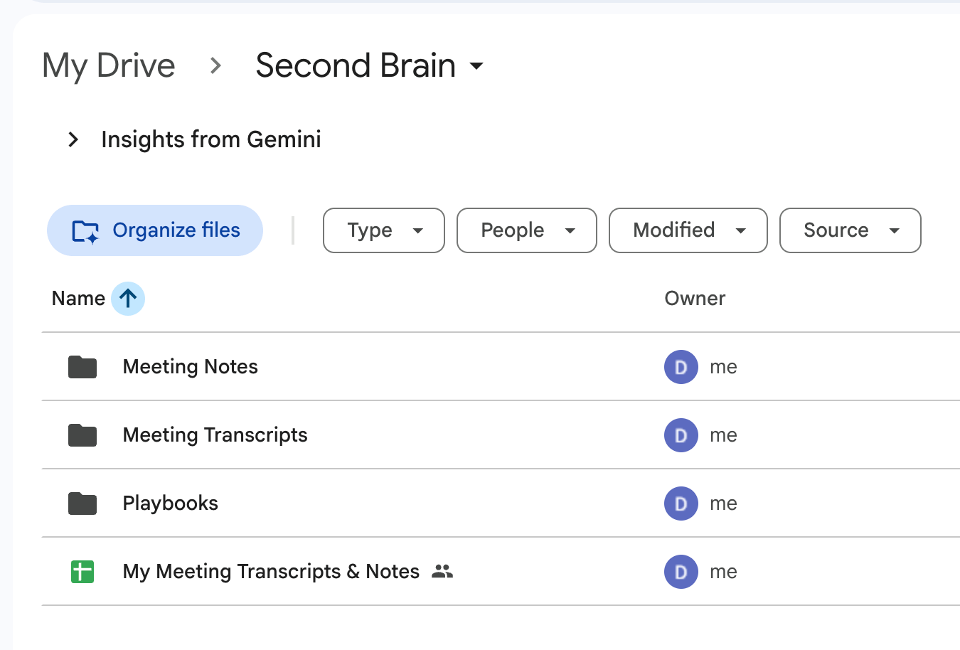 So what we did was set up Google Drive as the central brain for all meeting information. Transcripts, notes, all of it lives there.